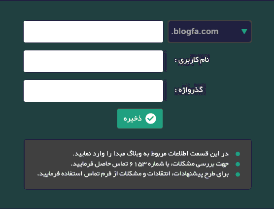 این بخش به اطلاعات مربوط به مقصد تعلق دارد و در قسمت نام کاربری باید نام کاربری خود را در سرویس دهنده بلاگ درج نمایید